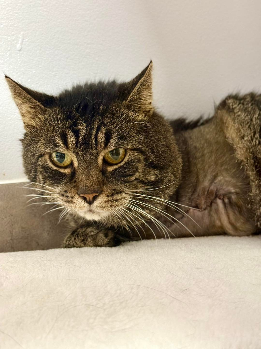 Ambroży to kotek z okolic Aleksandrowa Łódzkiego, który trafił pod naszą opiekę z poważnie uszkodzoną przednią łapką 🐾. Po dokładnym zbadaniu okazało się, że to dawne, źle zrośnięte złamanie w obrębie łokcia i nadgarstka lewej przedniej kończyny. Niestety, uraz był na tyle poważny i stary, że nie było szans na jego naprawienie – łapki nie dało się już złożyć tak, by kiedykolwiek funkcjonowała prawidłowo. Jedynym rozwiązaniem była amputacja. 💔
