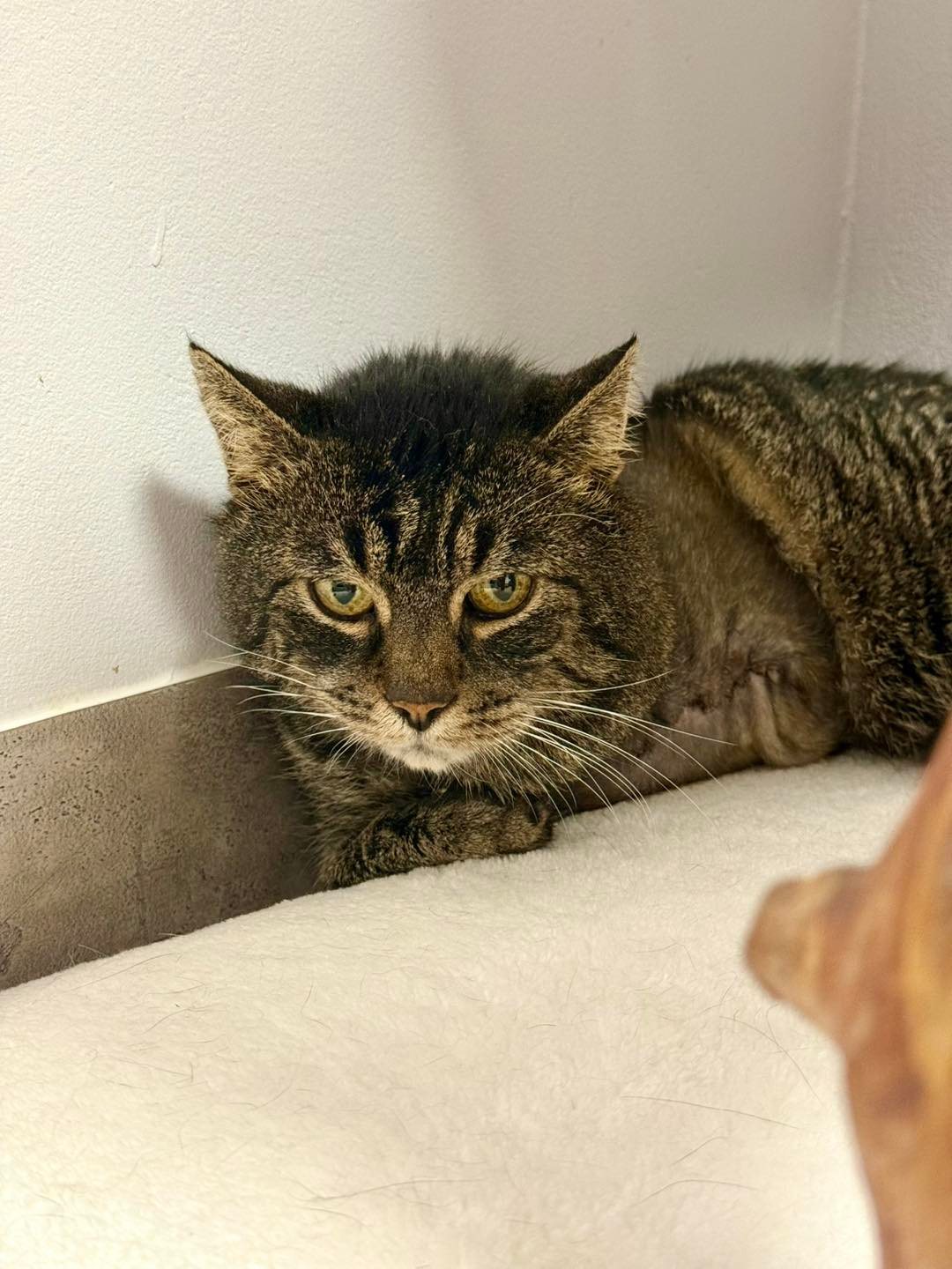 W kontaktach z ludźmi Ambroży wciąż jest ostrożny i nieufny – syczy i warczy, szczególnie w ciągu dnia, gdy w Mruczarni panuje większy ruch. Wieczorami, gdy robi się spokojnie, opuszcza swoją budkę, podchodzi do drzwi i z ciekawością obserwuje świat za oknem 🌙✨ Z innymi kotami żyje w zgodzie, nie szuka konfliktów 🤝🐾