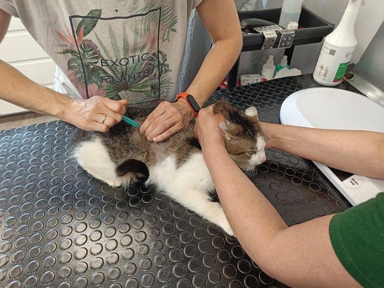 Berek zbliża się do półmetka terapii przeciwko FIP. 🐾 Na szczęście leczenie przynosi efekty – jego organizm dobrze na nie reaguje, a kontrolne badania, mimo że Berek jest FeLV+ (nosicielem wirusa białaczki kotów), wypadają zadowalająco jak na ten etap. 💉