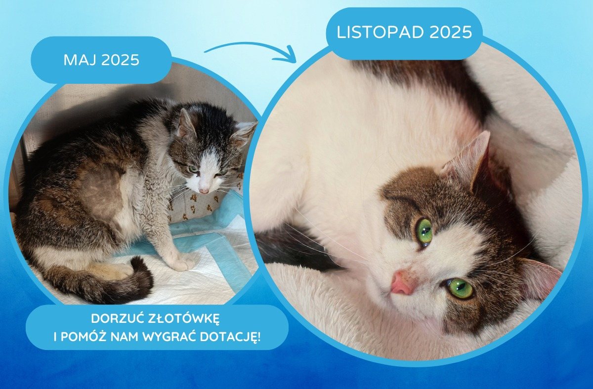 To właśnie dla takich historii walczymy w konkursie organizowanym przez Ratujemy Zwierzaki. Konkurs trwa do 4 grudnia, a wygrywają organizacje z największą ilością unikalnych głosów – czyli jednorazowych wpłat od 1 zł wzwyż 🧡. Każda wpłata to głos. Każdy głos zwiększa nasze szanse na dotację. A pierwsza nagroda to nawet 100 tysięcy złotych 🎉.
