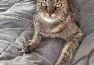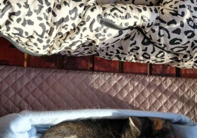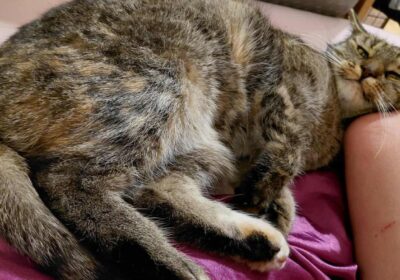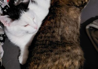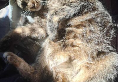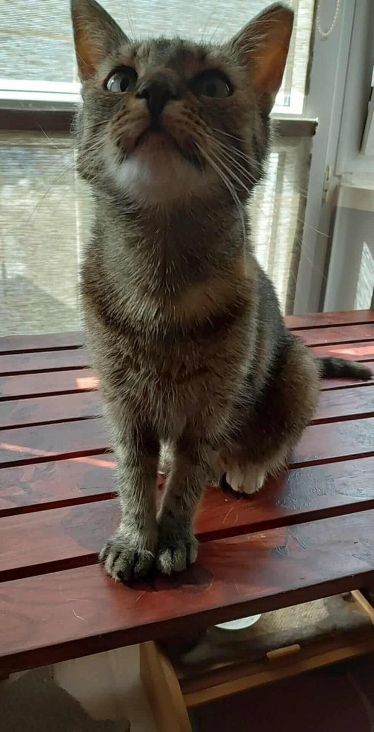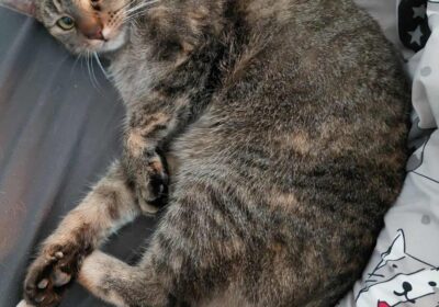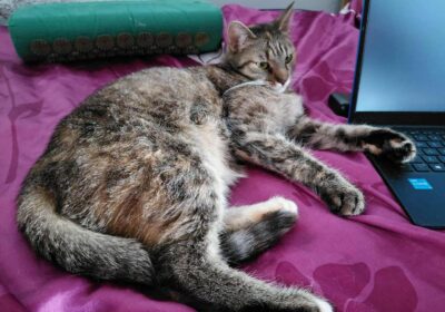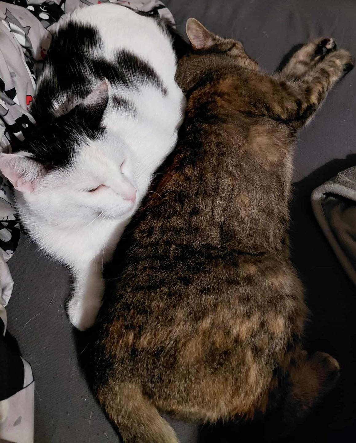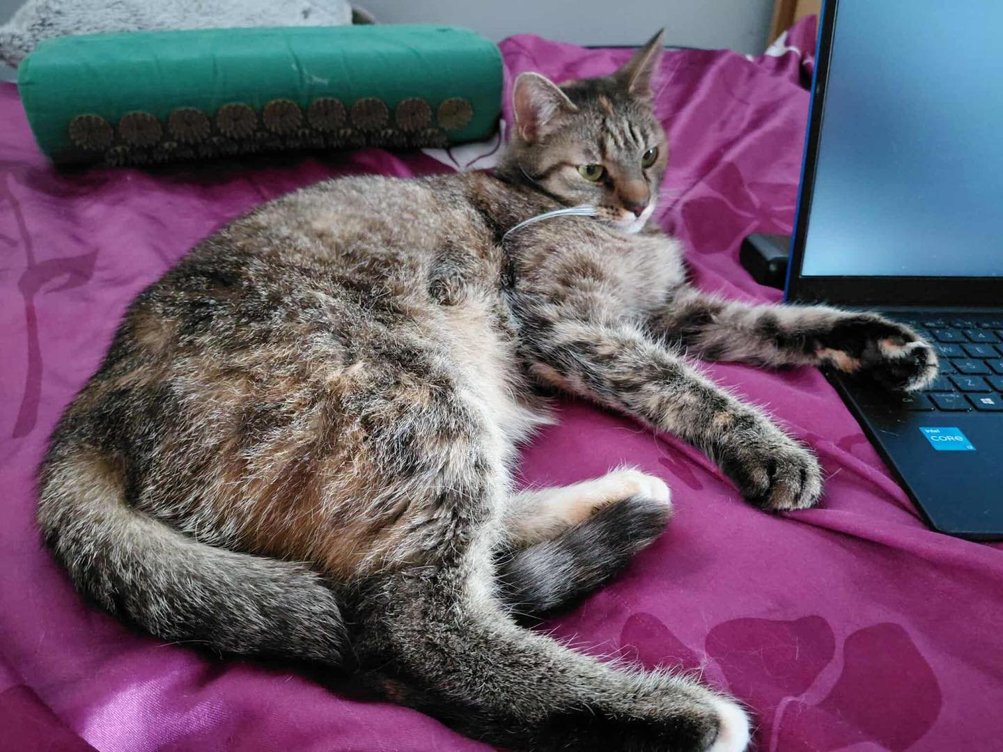 „Cześć Ciocie! Z tej strony fundacyjna Burka, teraz Żbikulka 🐱 Zastanawiam się czy ktoś jeszcze o mnie pamięta 🙂 Dzisiaj mam drugie adopciny, czas leci jak szalony. Przez ostatnie pół roku przeszłam totalną przemianę. Już wiem, że to jest mój domek i nikt mnie nie zostawi. Zaczęłam ugniatać mamę łapkami, jeszcze przez kołdrę, ale wszystko przed nami 😀 Codziennie rano przybiegam po porcję głasków i nawet przytulam się do mamy (przesyłam zdjęcie, bo nikt mi nie uwierzy). Czasami głośno krzyczę na mamę, szczególnie jak widzę w jej ręku saszetę 😃 Co do chorej nogi, to nikt mi już nie wierzy, że miałam operację, bo skaczę jak kozica z moim przyrodnim bratem 😃 Przesyłam ostatnie zdjęcia i pozdrawiam razem z całą rodziną”.