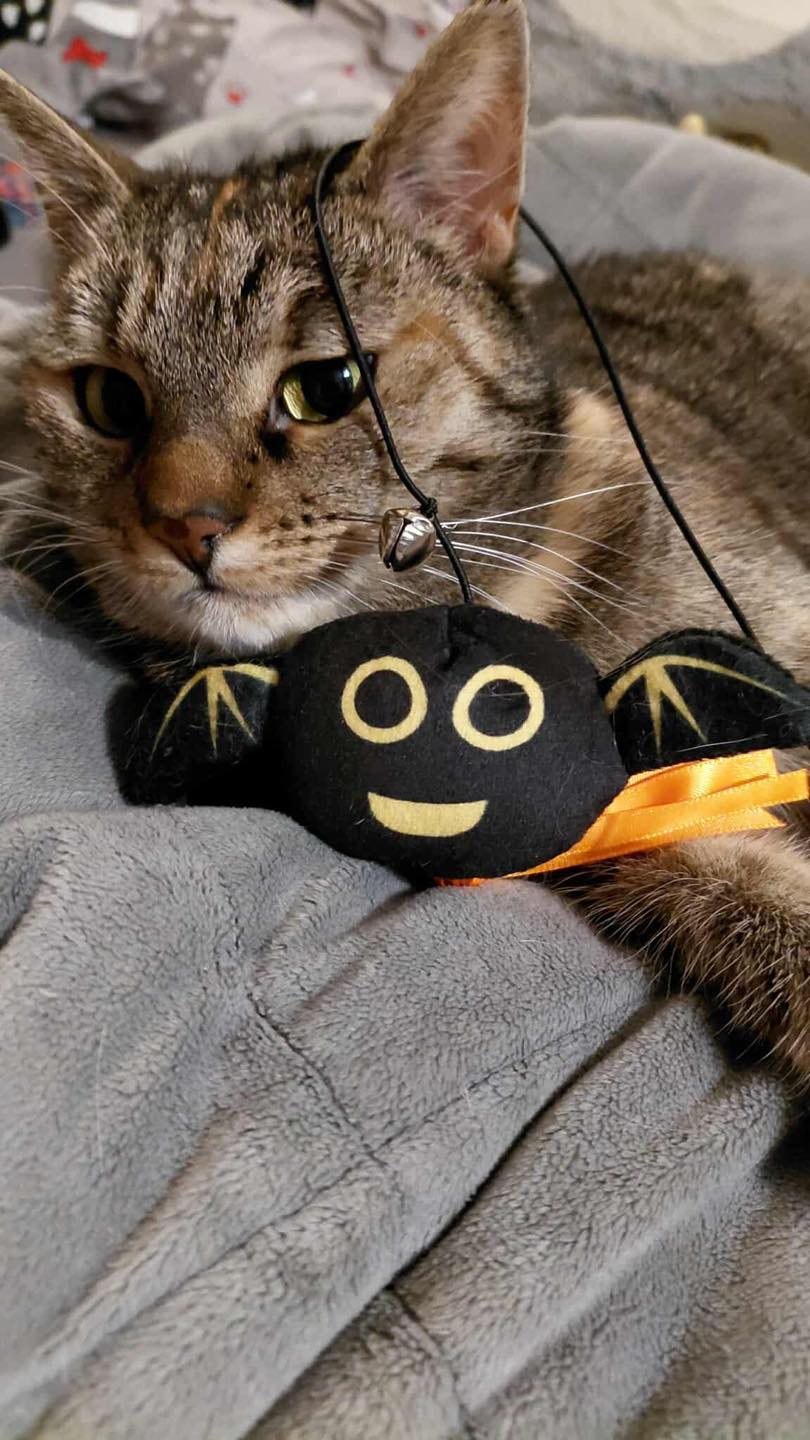 Przez długi czas mieszkała niemal pod sufitem mruczarnianych pokoi. Wybierała najwyższe półeczki i budki, miejsca bezpieczne, gdzie ręka człowieka nie miała dostępu ⛔️. Dopiero z czasem coś zaczęło się zmieniać. Zainteresowały ją wędki 🎣 .Pojawiła się zabawa, przestała uciekać na widok człowieka, zaczęła wyglądać go z ciekawością 👀.