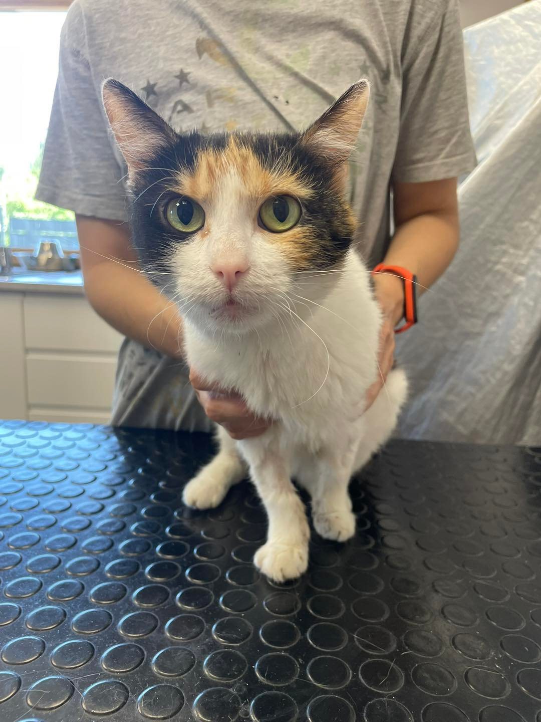 Powrót do pełni zdrowia w przypadku Calico nie jest niestety łatwy 😔. Koteczka po zabiegu miała problemy z chowaniem języka, przez co nie była w stanie jeść samodzielnie – konieczne było karmienie strzykawką. Przez moment pojawiła się nadzieja: jeden lepszy dzień, w którym zjadła samodzielnie, pokazał, że język działa prawidłowo i nie doszło do porażenia nerwów.