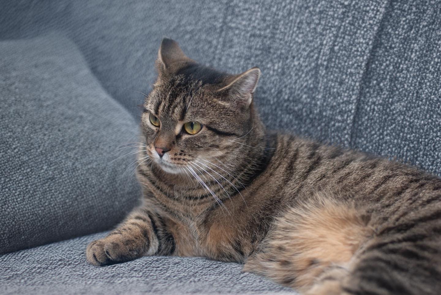 Dziś Chia ma około półtora roku. Jest młoda, otwarta, niezwykle kontaktowa i bardzo proludzka 💛 Kocha człowieka całym sobą — wita przy drzwiach, szuka bliskości, domaga się głasków i zaprasza do zabawy. Z innymi kotami funkcjonuje bez problemu, ale coraz wyraźniej widać, że najbardziej marzy jej się własny człowiek, taki tylko dla niej 🏡
