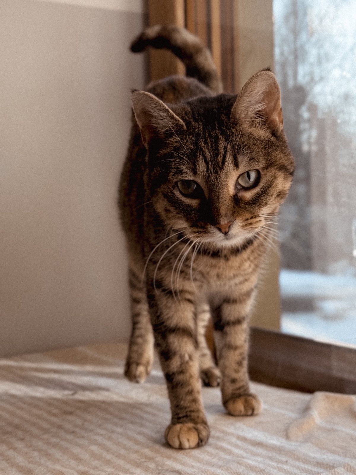 Na początku pozwalała się pogłaskać tylko wtedy, gdy spokojnie leżała na jednym z wysokich posłanek. Z czasem zaczęła jednak wychodzić nam na spotkanie, coraz śmielej szukając kontaktu z człowiekiem.