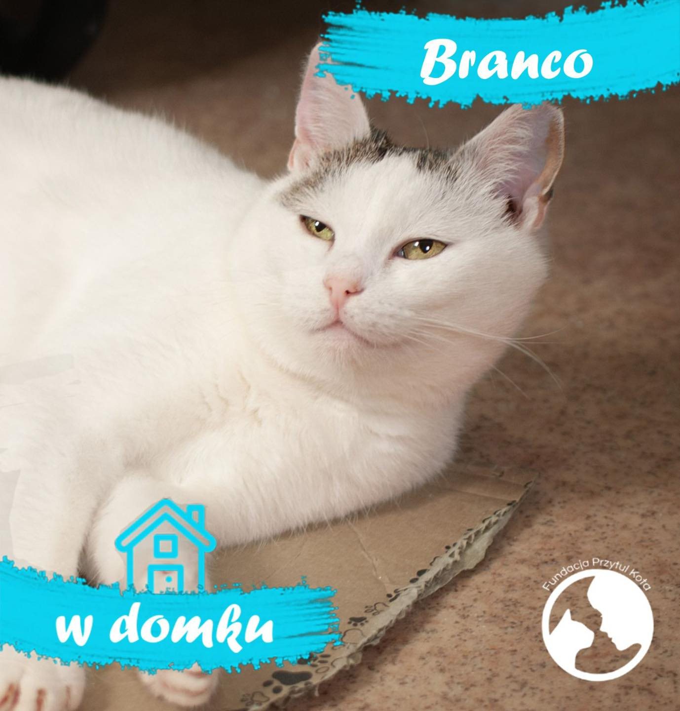 Branco trafił do nas w sierpniu 2024 roku na zabieg kastracji. Po zabiegu planowaliśmy go wypuścić, jednak szybko okazało się, że kocurek całkiem dobrze rokuje i jest pozytywnie nastawiony do człowieka. Niestety wszystko wskazywało na to, że będzie musiał być jedynakiem 🐈. Źle reagował na towarzystwo innych kotów i przez długi czas mieszkał sam, w oddzielnym pokoju.