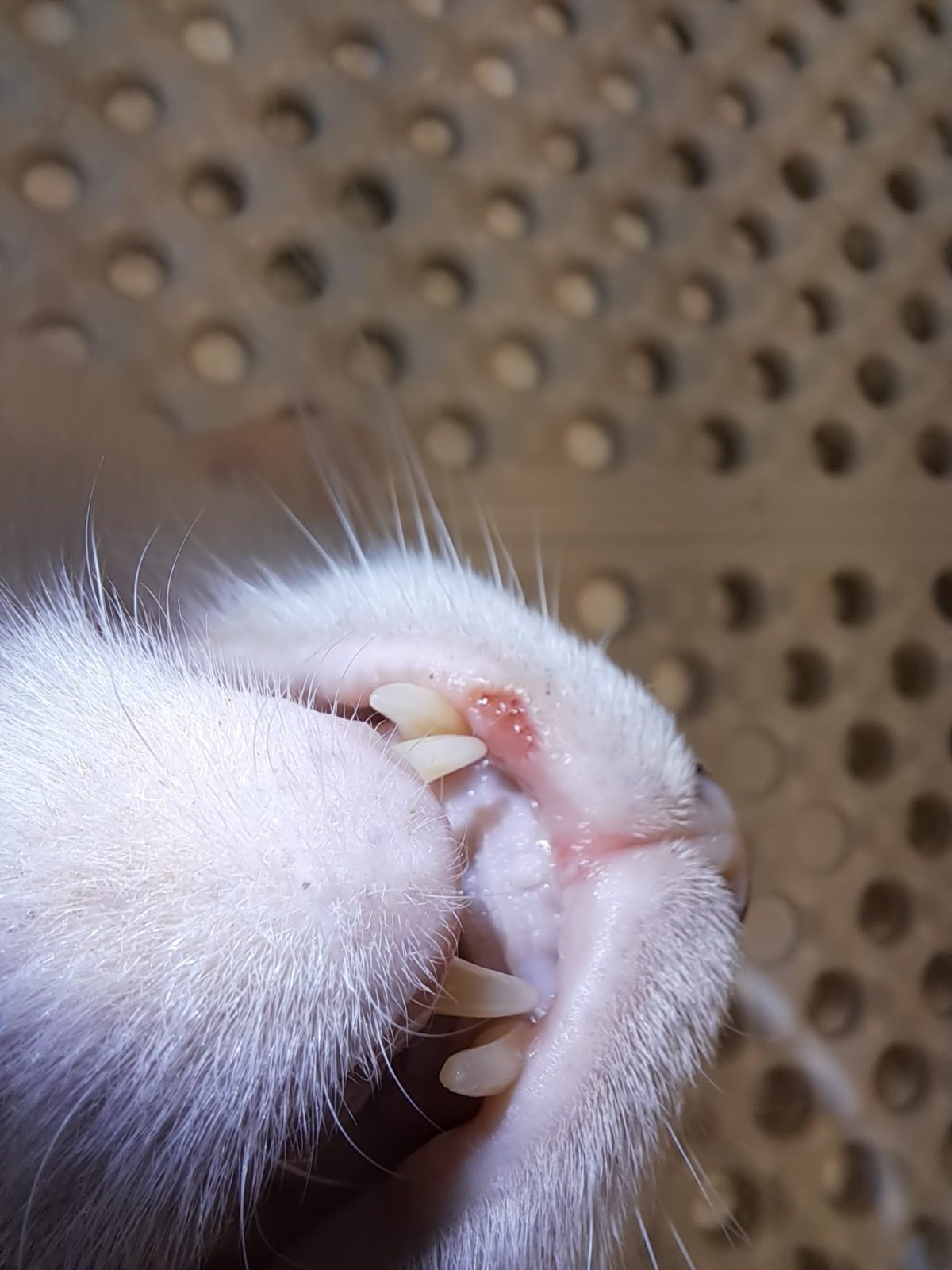 • Branco – dolny kieł wbijał się w górną wargę 😿