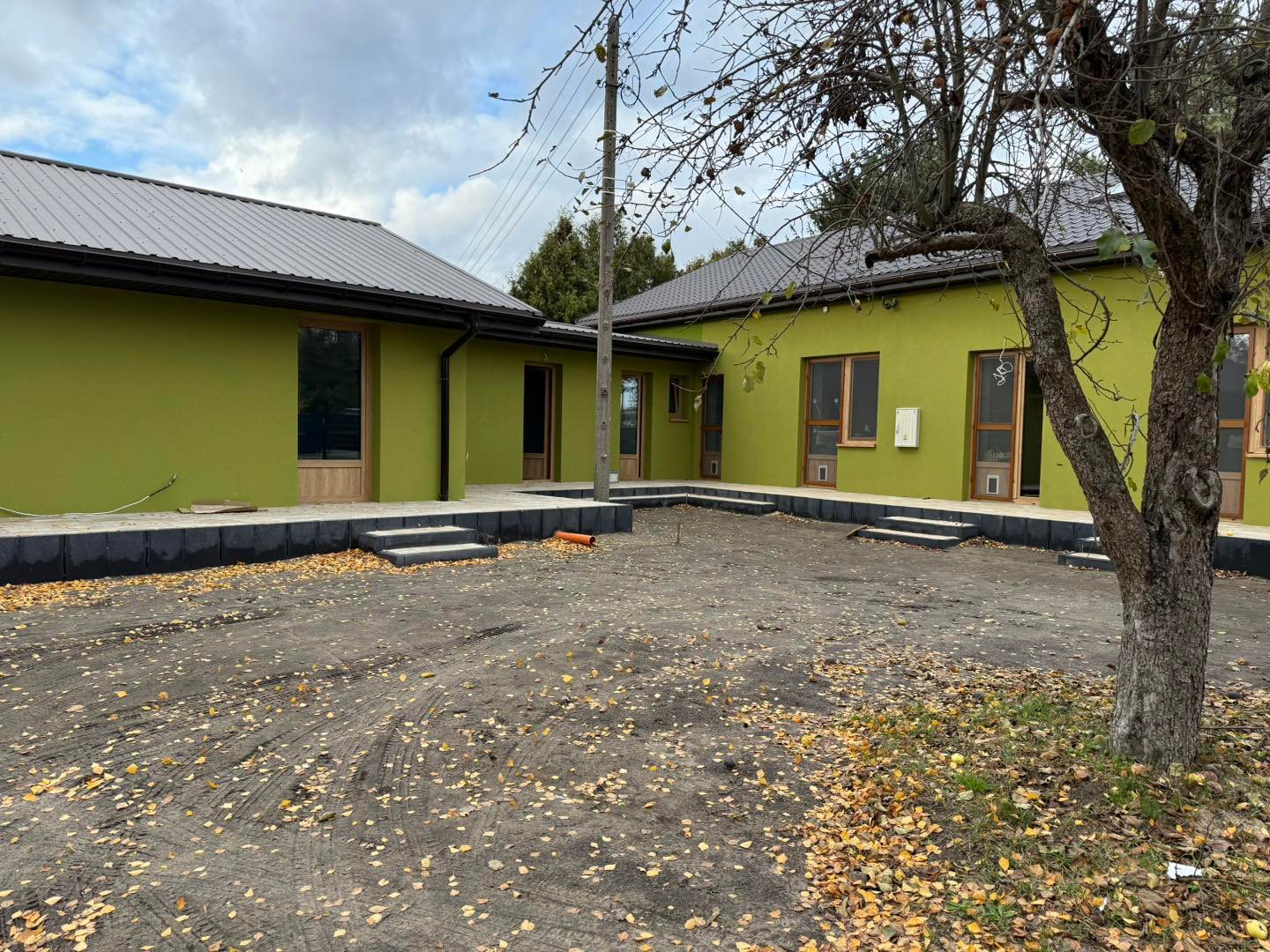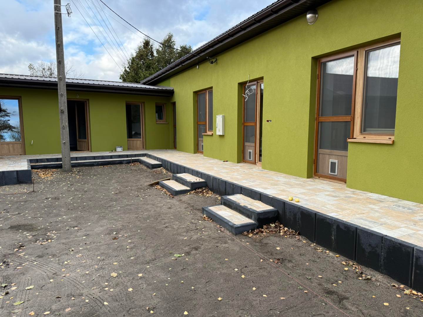 W międzyczasie udało się również otynkować budynek 🏠, co pozwoliło nam przejść do kolejnego etapu – przygotowania tarasików i podestów, które będą prowadziły z każdego pokoju prosto do wolier.