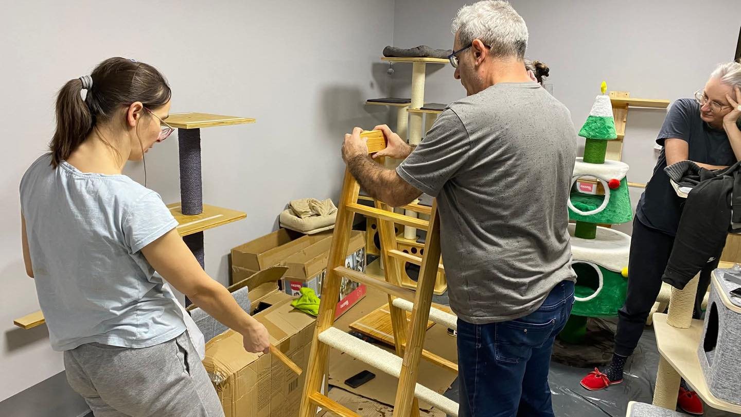 Jesteśmy niestety przepełnieni 😿 Adopcje w ostatnim czasie stoją w miejscu, a kotów potrzebujących pomocy wciąż przybywa… Dlatego właśnie nowe pokoje to dla nas priorytetowe zadanie, które chcieliśmy ukończyć jeszcze przed zimą ❄️
