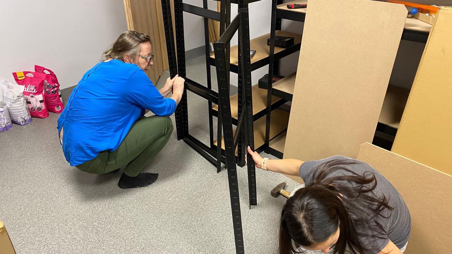 🪞 złożyliśmy szafy, stelaże i półki, by wszystko było gotowe na przyjęcie kolejnych mruczków i darów – od was, cudownych Lubicieli! 🐾