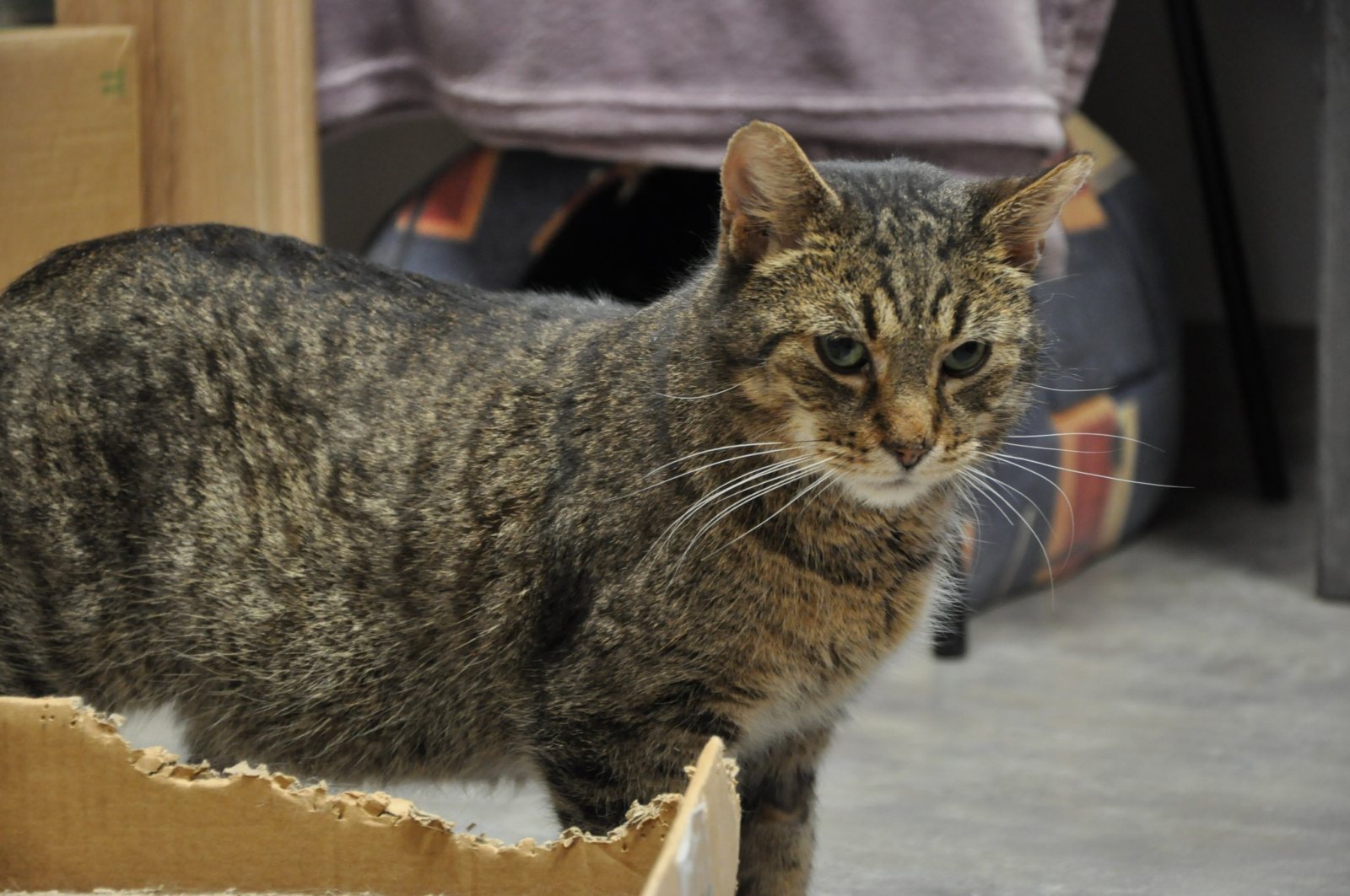 Na ten moment kocurek zamieszkał w Mruczarni. Mimo młodego wieku jest spokojny i cichy, dlatego nie najlepiej odnajduje się wśród rówieśników. Najlepiej czuje się w towarzystwie kocich seniorów — i z nimi właśnie zamieszkał. Ma tam ciszę, spokój i nikt go nie zaczepia. Na tyle, na ile to możliwe, w obecnym stanie ma zapewniony komfort 🍀💚