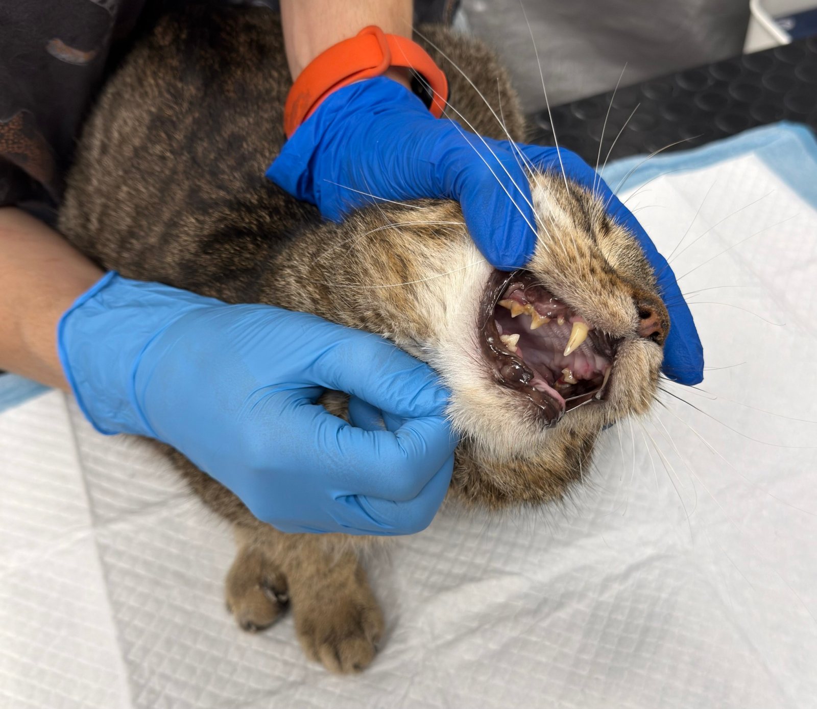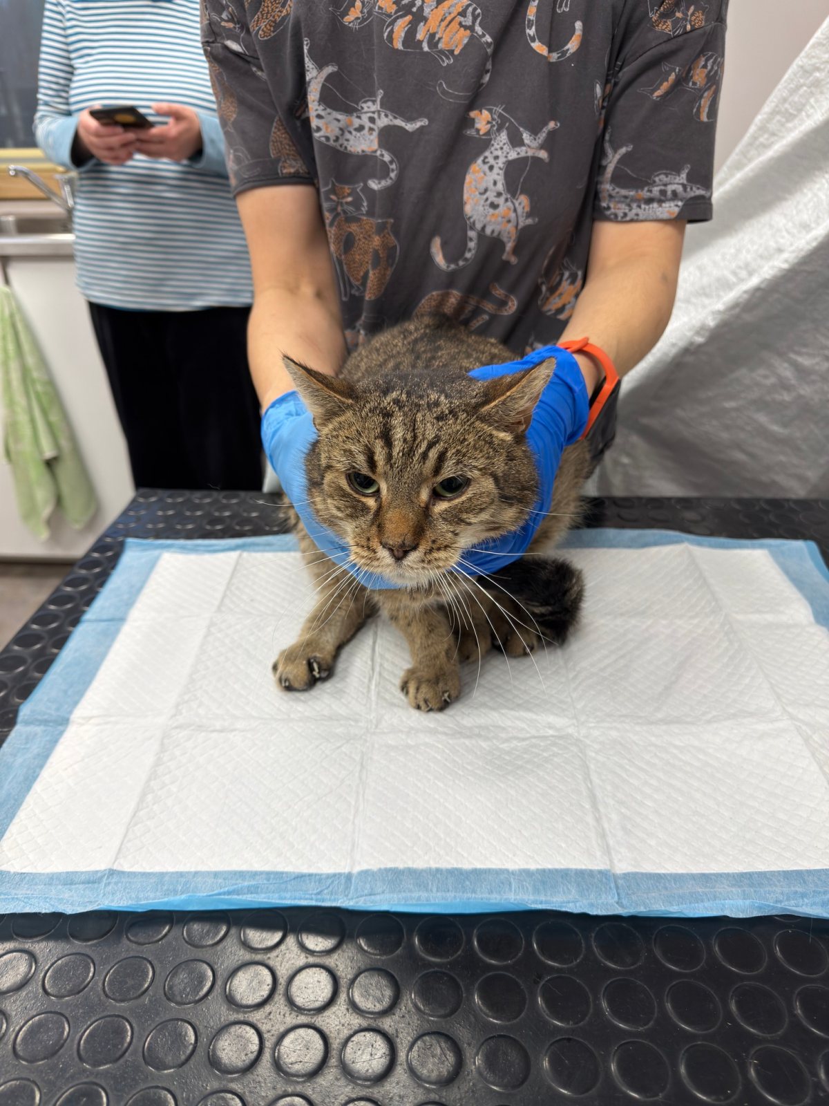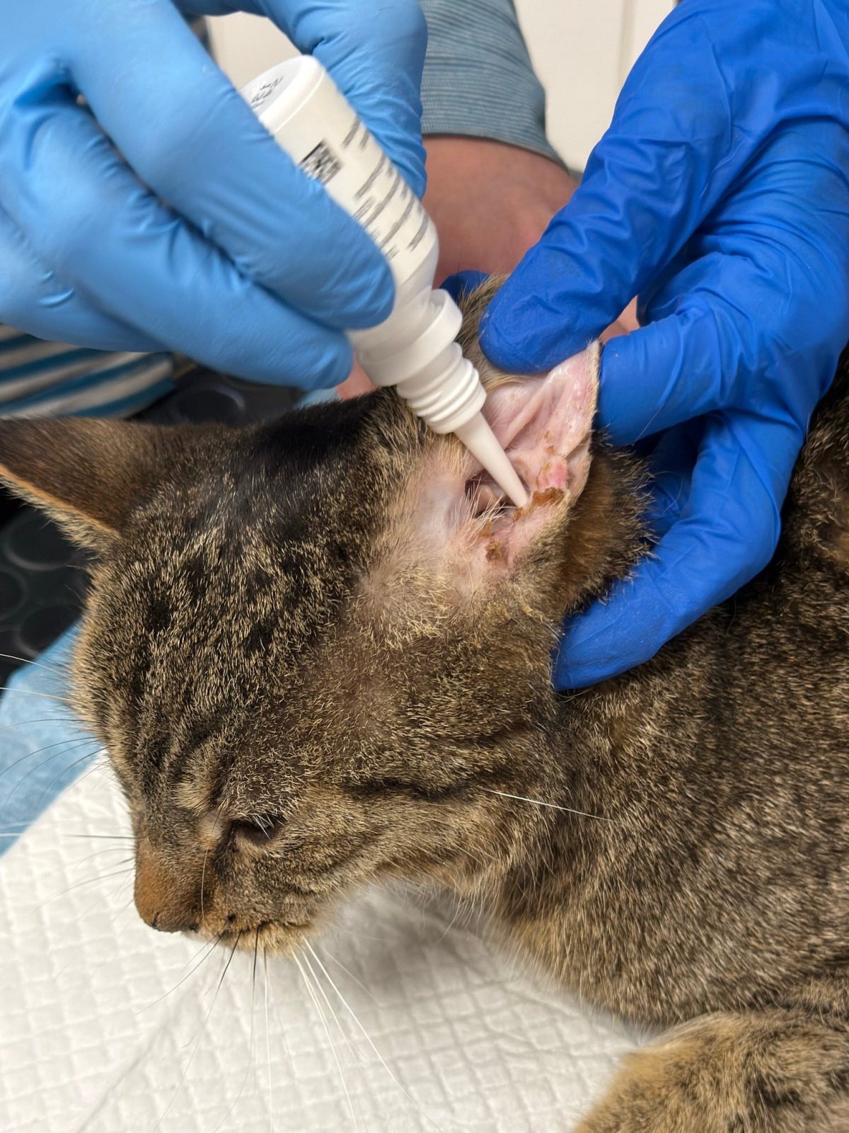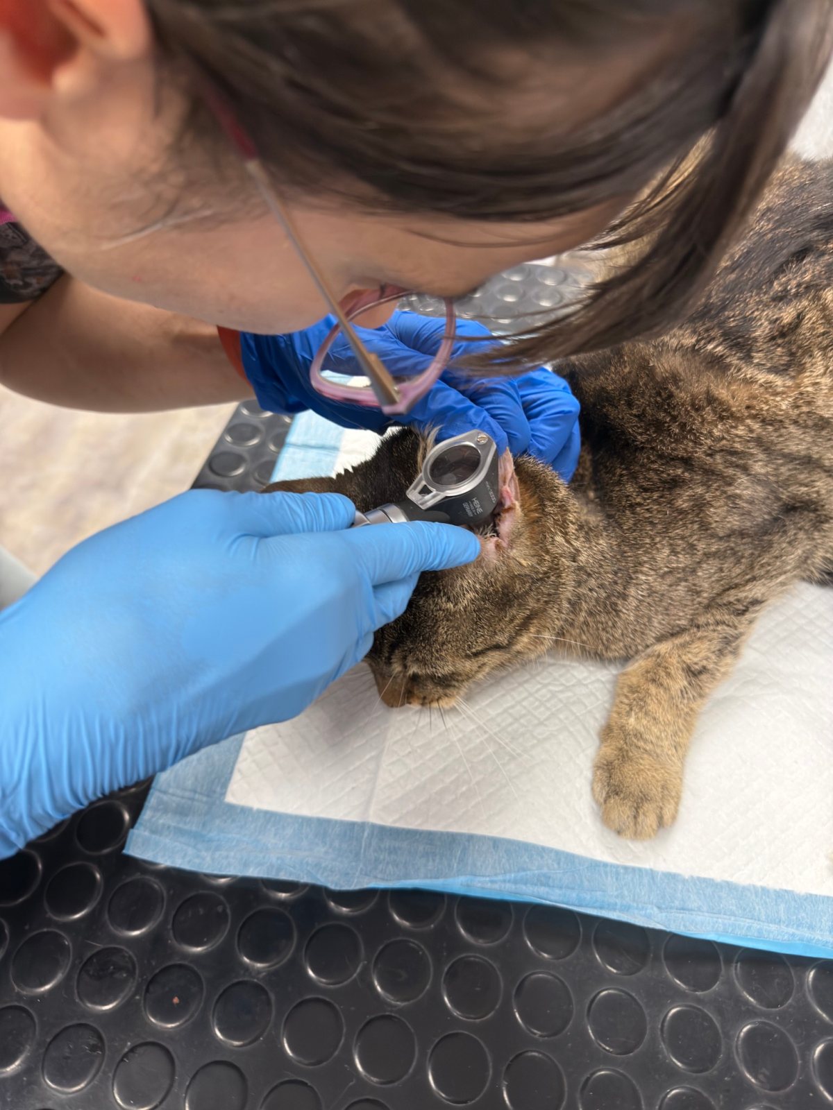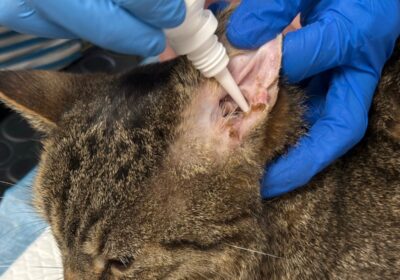Po przyjęciu szybko okazało się, że problem z uchem jest poważny, a mimo leczenia ogólnego stan zapalny wciąż nawraca 😣🔥 Wiedzieliśmy, że Obi miał wcześniej polipa w uchu i podejrzewaliśmy, że być może jego pozostałość wywołuje obecne, nawracające dolegliwości. Niestety trudno było to zweryfikować otoskopowo — ucho bardzo Obiego bolało i nie pozwalał na dokładniejsze badanie 😿 Wykonaliśmy antybiotykogram, który pomógł nam w doborze antybiotyku celowanego — w trakcie jego przyjmowania stan uszka Obiego poprawił się, jednak gdy tylko zakończyliśmy terapię, problemy wróciły 🔄