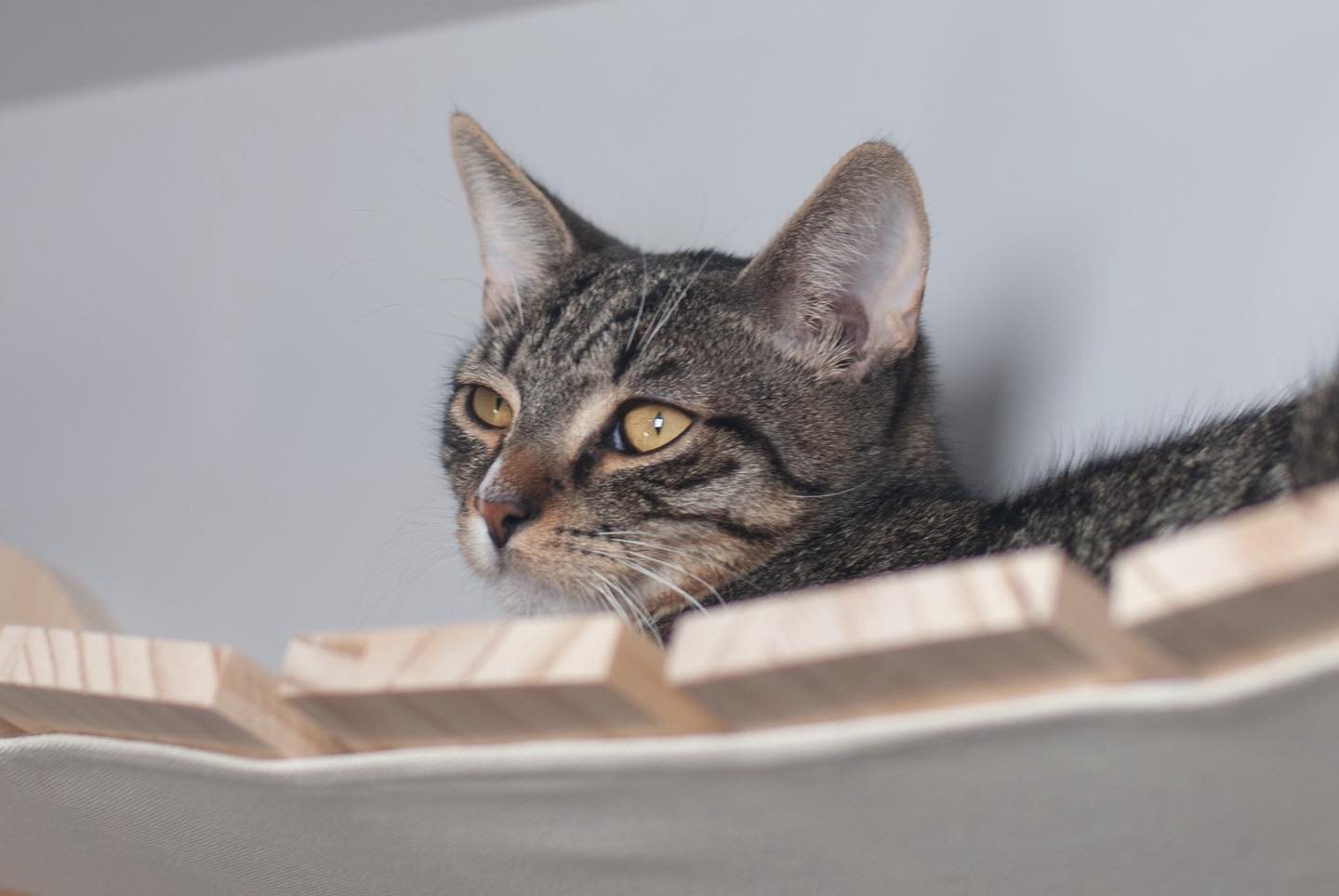 Tutaj Olsen ma towarzystwo innych kotów, a to dla niego ogromna wartość. Z kotami dogaduje się świetnie — bawi się z nimi, śpi przy nich, zaczepia, goni, szaleje. Jest wesoły, pewny siebie i odważny, o ile tylko w pobliżu nie ma człowieka 😸 I naprawdę widać, jak bardzo kocha towarzystwo swoich mruczących kolegów.