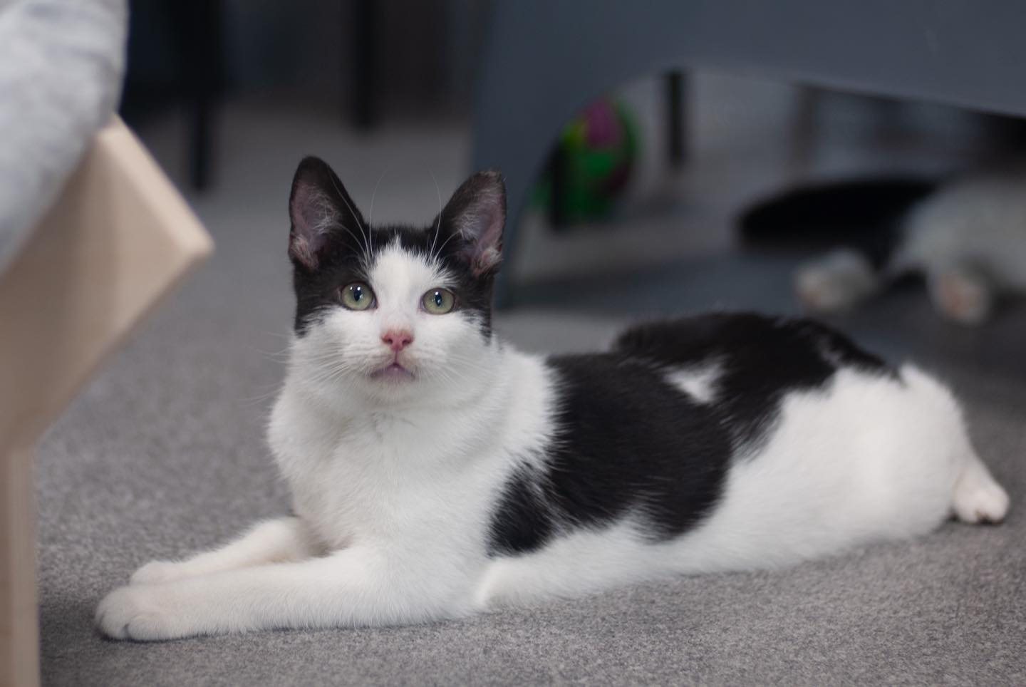 Mimo tych problemów Peso i Funt radzą sobie naprawdę dobrze 💪 Są młodzi, pełni energii i absolutnie nie mają zamiaru zwalniać tempa. Apetyt? Wzorowy 🍽️ Rano to właśnie oni jako pierwsi meldują się przy miskach, a w oczekiwaniu na jedzenie potrafią wskoczyć na wózek, byle tylko być bliżej posiłku. Jedzą chętnie, bawią się, rozrabiają i funkcjonują jak typowe, radosne młode kocurki 🐾