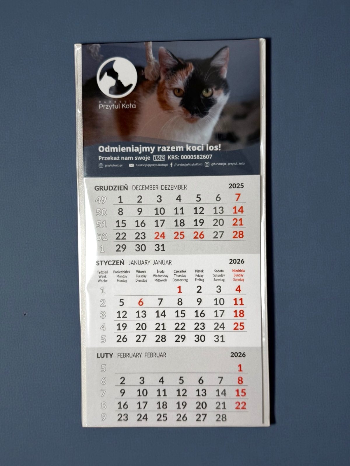 Magnetyczny kalendarzyk Fundacji Przytul Kota 2026