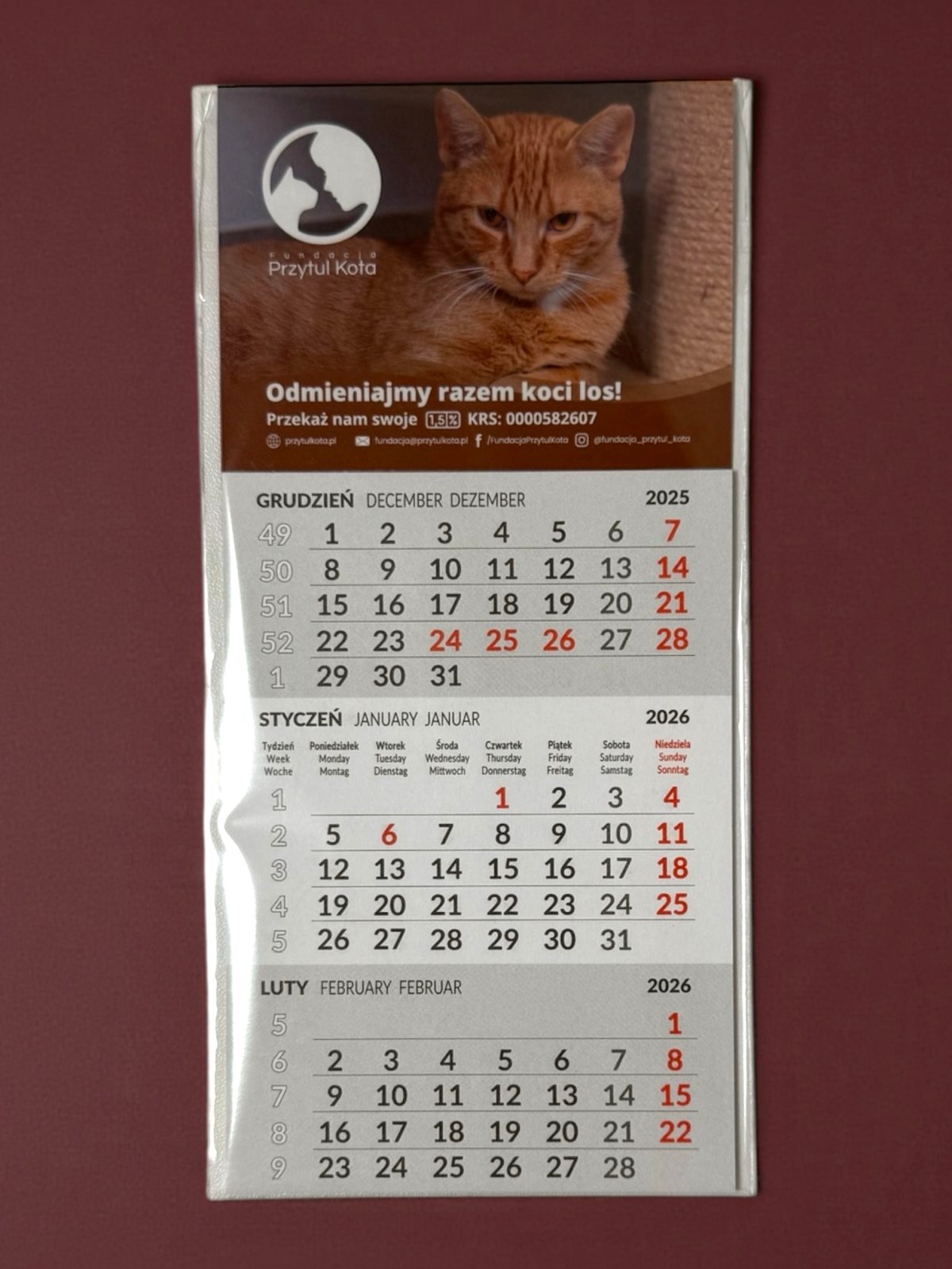 Magnetyczny kalendarzyk Fundacji Przytul Kota 2026