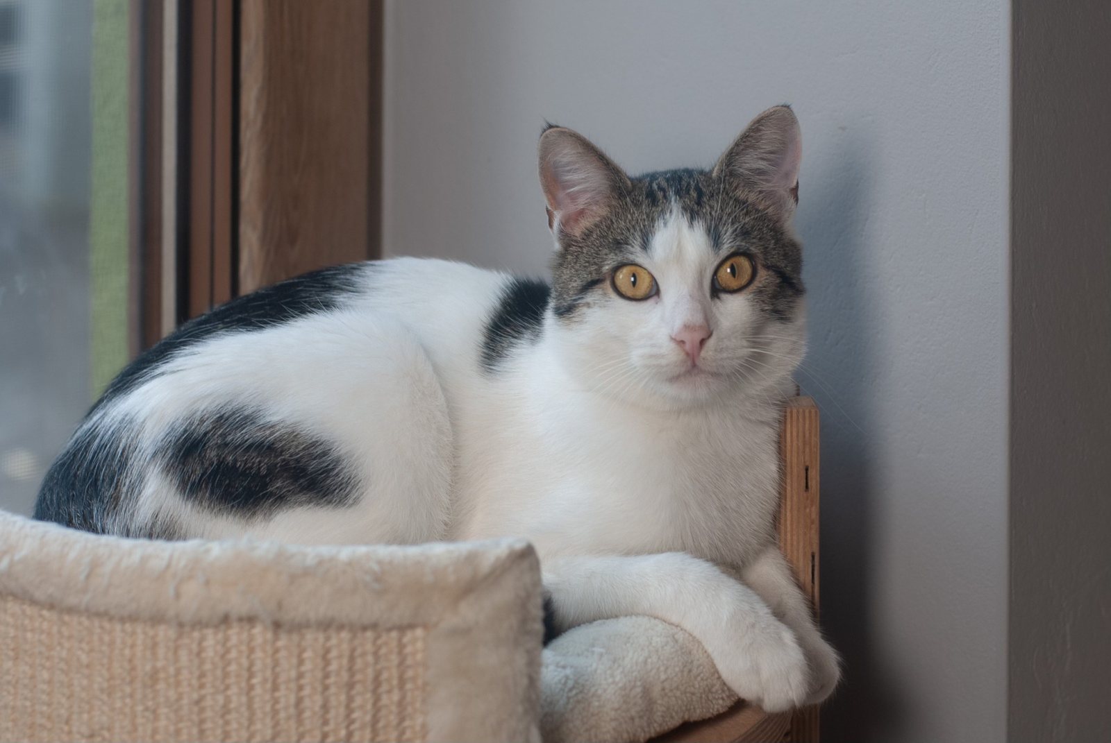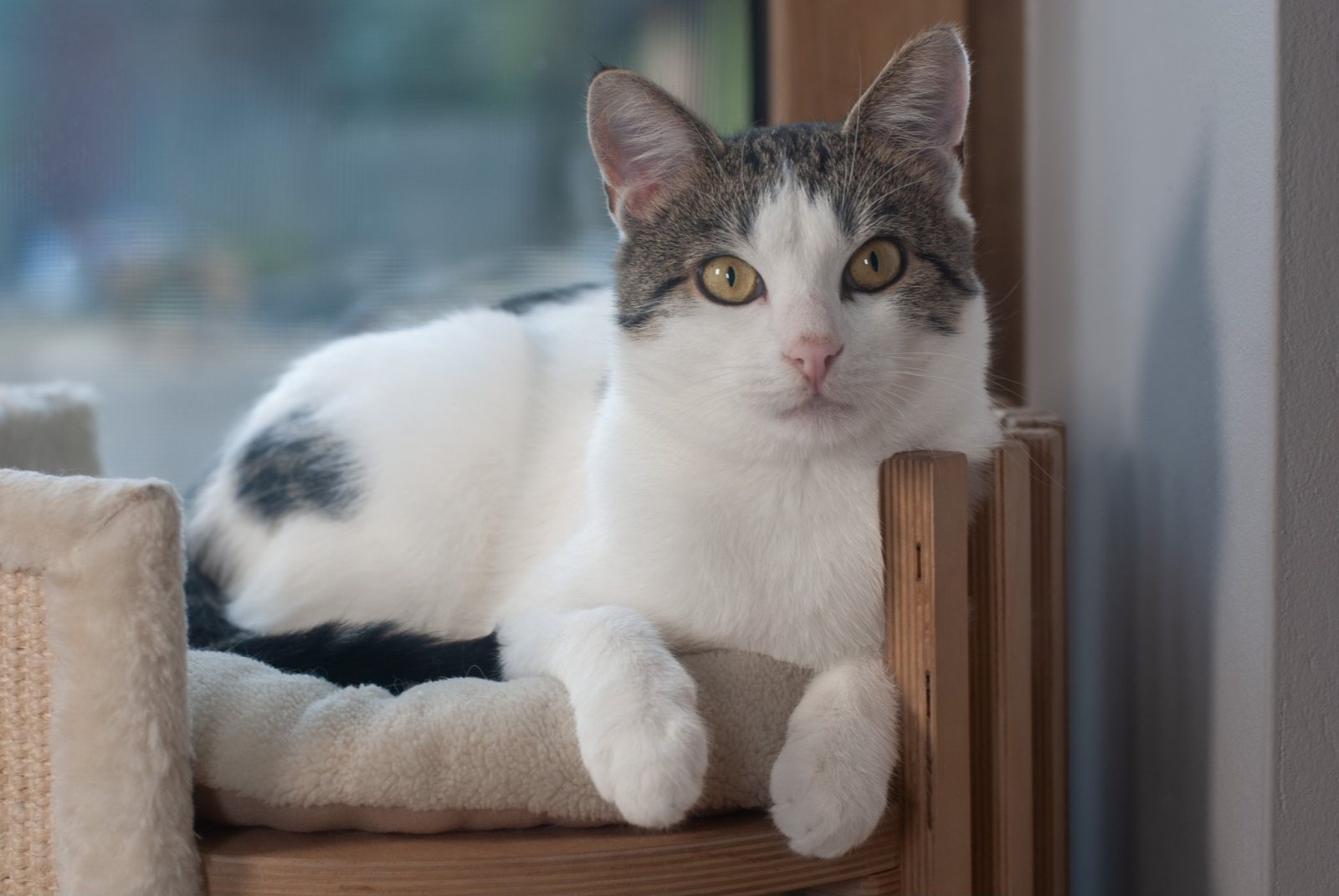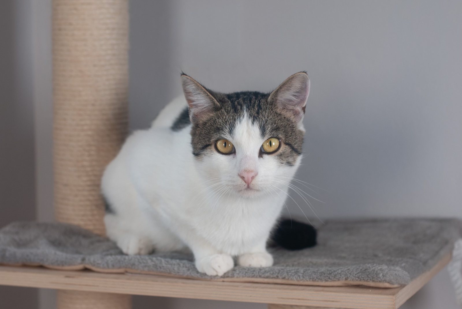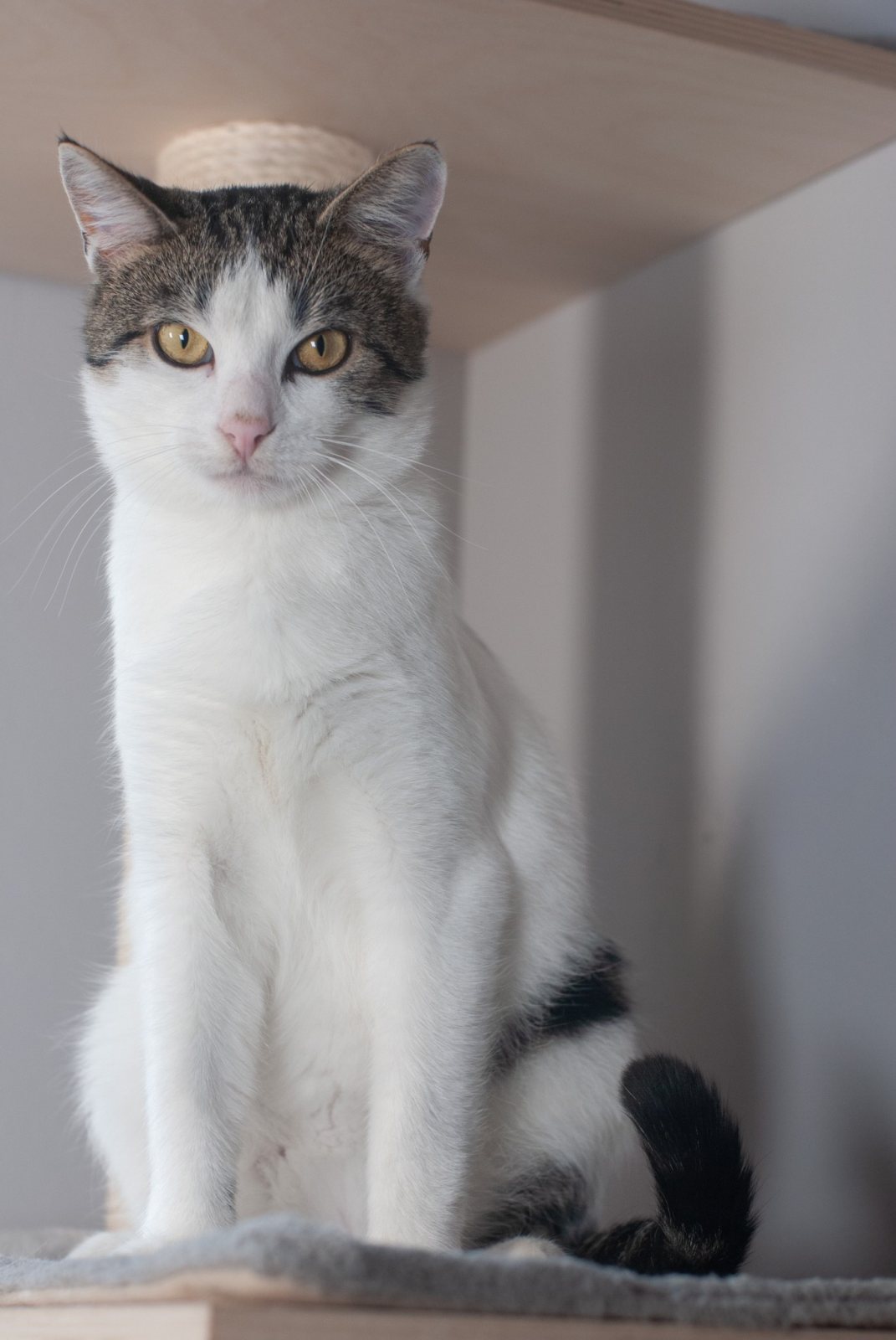 Jest łagodny, pogodny i absolutnie rozkoszny. Uwielbia obecność człowieka, tuli się, mruczy, szuka kontaktu 🤍. Wydaje się stworzony na najlepszego kociego towarzysza. Jak każdy młody kot, bo ma dopiero nieco ponad rok, kocha zabawę, eksplorowanie i drobne psoty, które rozczulają każdego wolontariusza 🎉.