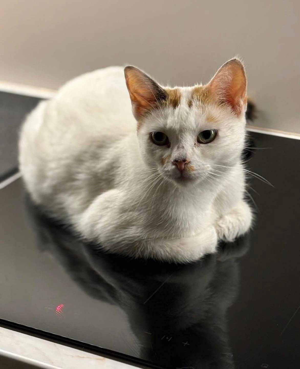 Mama Stefanka to około trzyletnia koteczka, bardzo spokojna, niewchodząca w konflikty. Czasami zdarzy jej się zasyczeć na któregoś z rezydentów, ale najczęściej… przy misce — jedzenie wciąż jest dla niej ogromnie ważne. Życie na ulicy nauczyło ją, że o jedzenie trzeba walczyć, dlatego przy Stefance nie można zostawiać nic na stole 😉