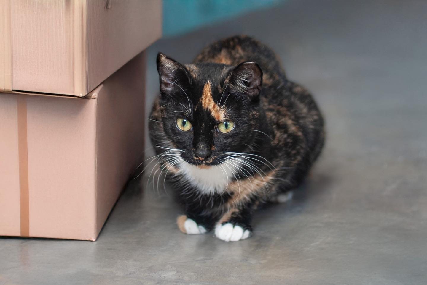 Po pierwszych dniach stresu związanych z kolejną zmianą otoczenia kociaki zaczęły się uspokajać i ponownie odnajdywać w znanej sobie przestrzeni. Na początku były wyraźnie nieufne — widać było, że po raz kolejny zawiodły się na człowieku 😿 Jednak z każdym dniem wracały do punktu, w którym były przed adopcją.