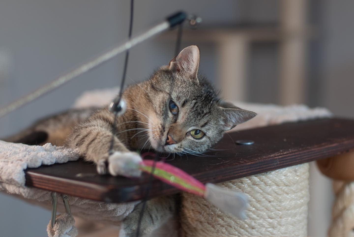 Na razie jednak w życiu Talo najważniejsza jest zabawa. Jest niestrudzony w polowaniu na wędki i gonitwie za piłeczkami – uwielbia biegać, skakać i szaleć 🔥. W nowym domu zdecydowanie będzie mu potrzebne towarzystwo innego kota, możliwe młodego, gdyż senior mógłby nie podołać temperamentowi Talo. Kocurek szczęśliwie uwielbia przedstawicieli swojego gatunku i dobrze się z nimi dogaduje, choć trzeba przyznać, że ma silny charakter i od czasu do czasu lubi okazać dominację, zwłaszcza względem rówieśników 💪🏻.